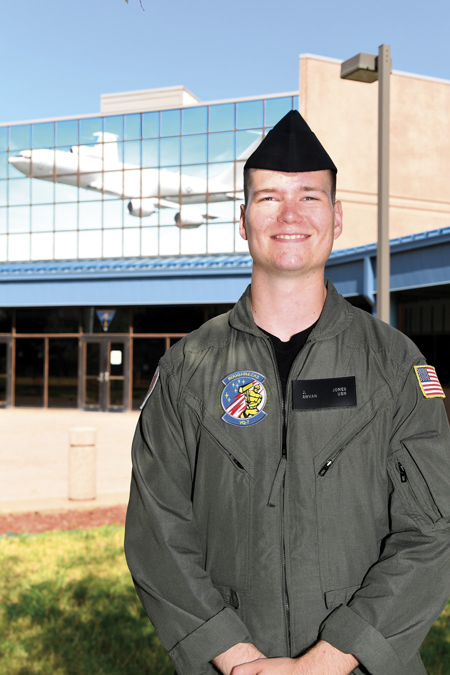 Today, Jones serves as a naval air crewman (avionics) assigned to Fleet Air Reconnaissance Squadron Seven (VQ-7) in Oklahoma City. Jones supports the nation’s nuclear deterrence mission at Strategic Communications Wing One (STRATCOMMWING ONE). Its “Take Charge and Move Out” (TACAMO) mission provides airborne communication links to nuclear missile units of U.S. Strategic Command.