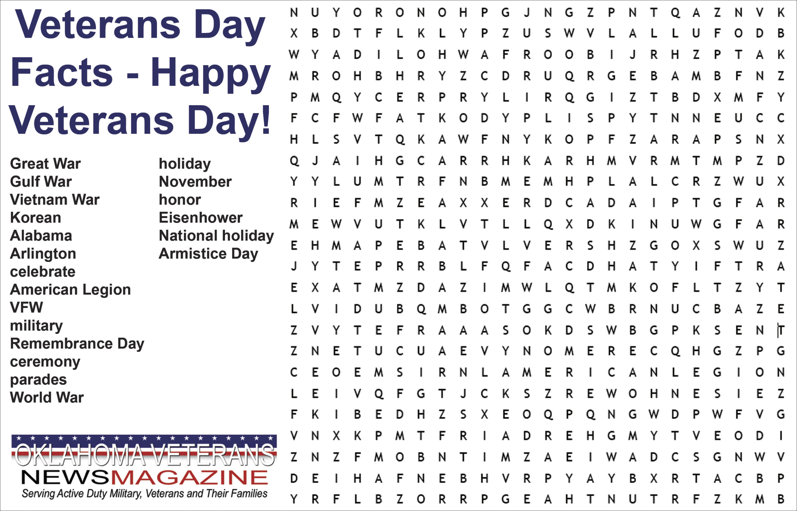 Home 11/01-25 WORD SEARCH – VETERANS DAY FACTS 11/01-25CLICK HERE FOR MORE SN&L NEWS THIS MONTH WORD SEARCH – VETERANS DAY FACTS By Steve Eldridge - Oct 29, 2025 14 0 FacebookTwitterPinterestWhatsApp RELATED ARTICLESMORE FROM AUTHOR ON THE COVER: Raising Funds for Native American Warrior Project Faces of the Fallen Chaplain’s Corner – Your Sabbath AMERICAN LEGION POST 12 NOVEMBER EVENTS Post 12 Launches Veterans for Country, Service, Inc. Saint Ann 24-hour Concierge Enhances Fun, Friendly Culture Social0FansLike0FollowersFollow0SubscribersSubscribe