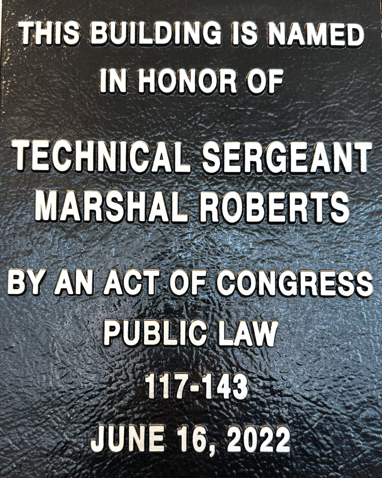 A portion of Highway 20 between Claremore and Owasso is dedicated in his name. The post office in Owasso was named in his honor in 2023. Because Roberts was killed at the beginning of COVID, his funeral and any public ceremonies were limited. Kristie and Robert’s mother spoke at the dedication and said it was the first time they spoke about him publicly since his funeral. Kristie described Marshal as a humble man who would blush at the thought of a building or highway being named after him. However, there is no question about the importance of having permanent structures like this for the public to honor his service and sacrifice.